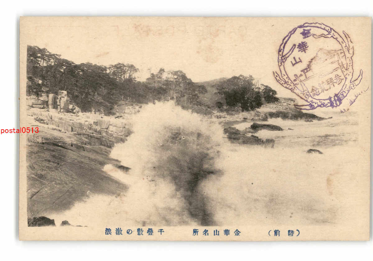 宮城 陸前 金華山名所 千畳敷の激浪 *傷み有り