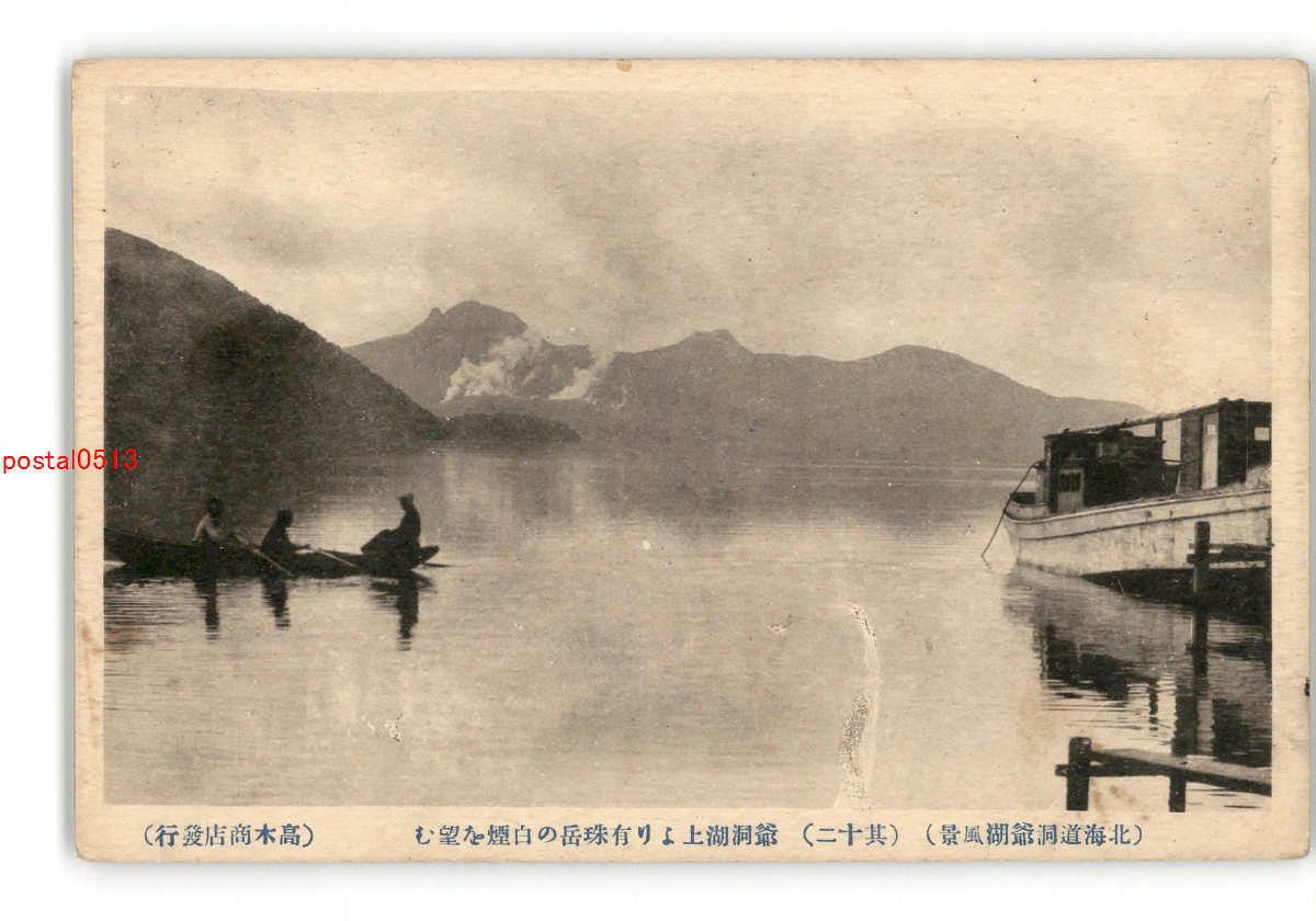 北海道 洞爺湖風景 その12 洞爺湖上より有珠岳の白煙を望む *傷み有り