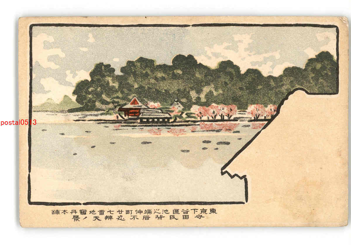 東京 下谷区池の端仲町27番地宝丹本舗 守田氏背后不忍弁天の景 *折れ有り *傷み有り