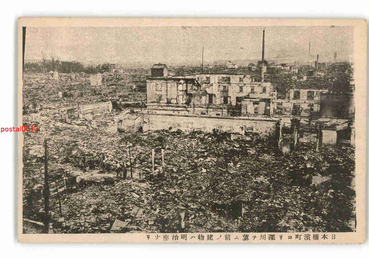 東京 日本橋濱町より深川を望む前の建物は明治座なり *傷み有り